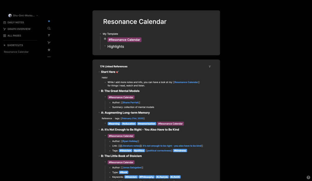 Roam Research Zettelkasten + Resonance Calendar Templates